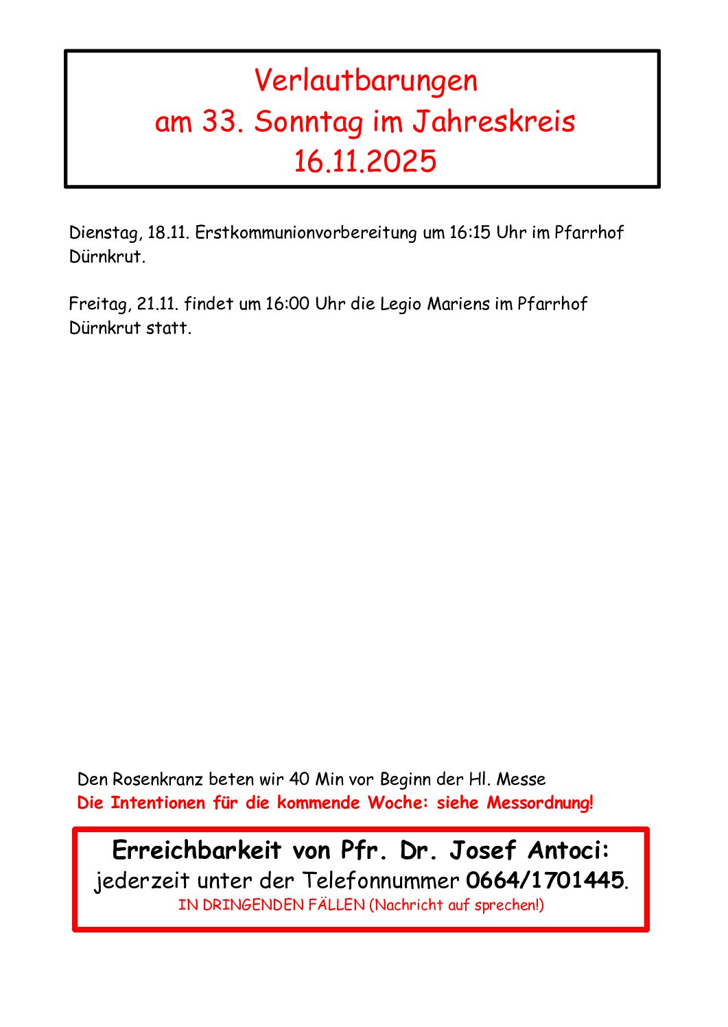 Am 24. Oktober visitierte Herr Weihbischof DI Mag. Stephan Turnovszky unser Pfarre Dürnkrut. Er hat Betriebe und Kranke besucht um mit den Menschen zu sprechen. Am Nachmittag war er zu Besuch am Gemeindeamt wo er die Bürgermeister von Dürnkrut und Jedenspeigen traf. Am Samstag, 25. Oktober im Rahmen des missionarischen Projekts (von der Legio Mariens vorbereitete Bibelzitaten) konnte der Herr Weihbischof mit Menschen aller Konfessionen sprechen.