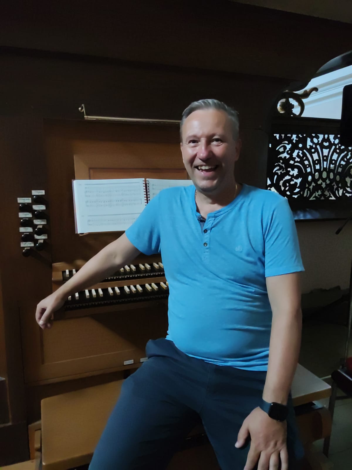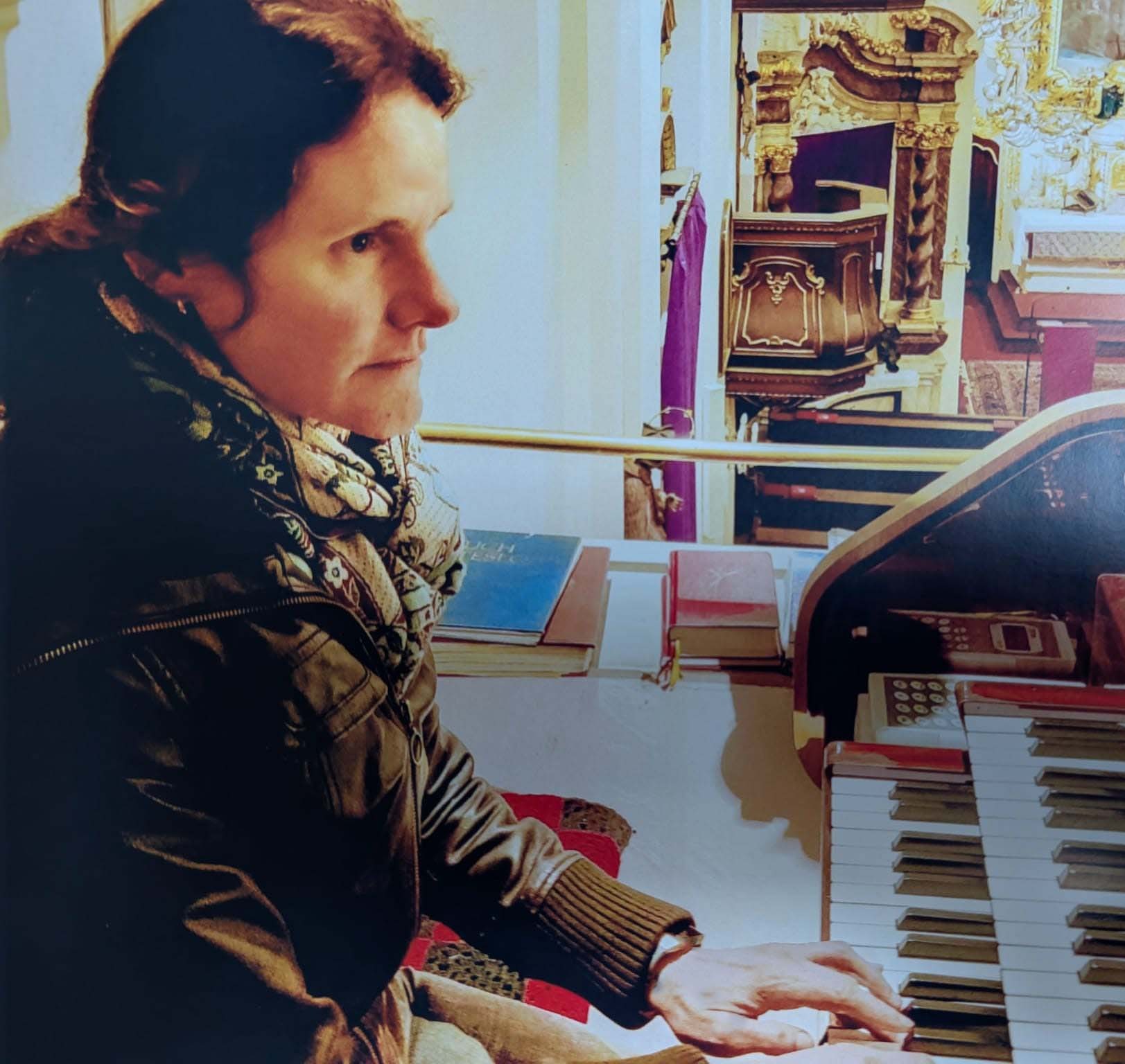 Magdalena. An der rückwärtigen Kirchenwand sieht man zwischen den Orgelpfeifen als Wandfresko, das Jüngste Gericht.