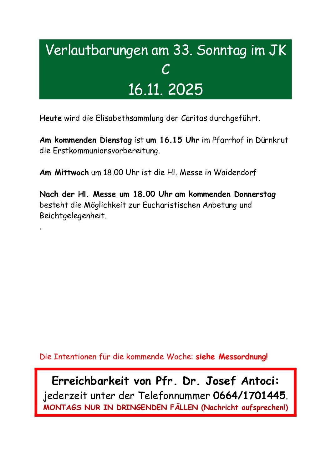Am 23. Oktober visitierte Herr Weihbischof DI Mag. Stephan Turnovszky unsere Pfarre Waidendorf. Er hat die Senioren bei Kaffee und Kuchen getroffen, und mit den Winzern bei einer Weinverkostung teilgenommen, sowie mit Vereinen und Gruppen die neu renovierten Gemeinschaftsräume (ehemalige Schule) gesegnet. Auf dem Alten Friedhof hat er eine Bischofslinde gesetzt. Anschließend ging es in einer Prozession zur Kirche wo der Herr Weihbischof eine Visitation-Werktagsmesse gefeiert hat. Nach der Hl. Messe konnte mit dem Herrn Bischof noch bei einer Agape gesprochen werden.